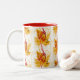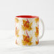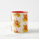 La taza de café de cerámica se muestra con una bonito de otoño de hojas impresas. Mug se muestra en blanco con un color rojo interior. Personalizar este artículo o compra tal cual.