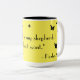 Taza de café personalizada de 444ml. ¡En cuanto a tamaño sólo puedo decir que enorme! pero es lo que esperaba así que estupendo. En el asa me entra la mano entera y no sólo tres dedos como me ocurría con las otras tazas. También comentar que es el tamaño que se ve en las series americanas, tanto para café como para infusión. En cuanto al acabado decir que es correcto, con poco tiempo de uso no puedo especificar mucho más. Pude escoger el nombre y el color pero no la tipografía, quizás esa elección pueda decidir a más gente. En términos generales y por el momento, buena opinión.