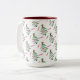 Felices fiestas con un gato y árboles de Navidad ¡Añade un toque de color a tu café matutino! La parte exterior de la taza presenta una base de color blanco brillante para tu foto, logo, estampado o texto; mientras que el borde y el asa lucirán el color sólido que elijas. Ideal para regalar a tus amigos o para darle un toque de color a tu mesa por las mañanas.