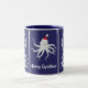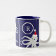 Taza Bicolor Feliz Navidad Monograma Octograma Santa Hat Azul