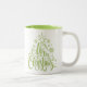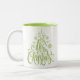 Esta taza de café verde festiva presenta un diseño moderno de tipografía "Feliz Navidad" en forma de árbol de Navidad. ¡Compra nuestra tienda por más colores!