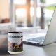 Taza de café personalizada de 444ml. ¡En cuanto a tamaño sólo puedo decir que enorme! pero es lo que esperaba así que estupendo. En el asa me entra la mano entera y no sólo tres dedos como me ocurría con las otras tazas. También comentar que es el tamaño que se ve en las series americanas, tanto para café como para infusión. En cuanto al acabado decir que es correcto, con poco tiempo de uso no puedo especificar mucho más. Pude escoger el nombre y el color pero no la tipografía, quizás esa elección pueda decidir a más gente. En términos generales y por el momento, buena opinión.