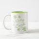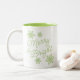 Este tazón de café o té Navidad es la manera perfecta de enviar saludos de temporada y deseos de vacaciones a su familia y amigos. El clásico saludo de Merry & Bright sobre la taza está escrito en un elegante estilo vintage de escritura de caligrafía verde brillante con letras a mano, y está rodeado de bonitos copos de nieve helados del mismo color. El diseño es sencillo y elegante, a la vez moderno y llamativo.