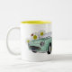 This mug features the Emerald Green Figaro. The story that this Figaro color represents “spring” is reflected in the design, with daisies in the background.