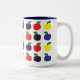 Coloridas manzanas Fruta de café de dos tonos diseñado por Nisha Prabhu. Las manzanas vienen en todos los tonos rojos, verdes, amarillos y morados oscuros. Las manzanas son la fruta favorita de todos, haciendo el regalo ideal para un cumpleaños, o cualquier otra ocasión feliz. La manzana, es el fruto del conocimiento, lo hace un regalo apropiado para un profesor.