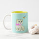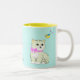 Taza Bicolor Gato Kitty y pequeño pájaro en azul claro