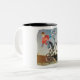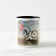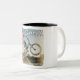 Gen X, lo hicimos. Un tazón de café con una foto nostálgica de un joven adolescente en una bicicleta bmx saltando.