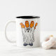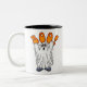 Un pequeño fantasma con zapatos y un texto naranja que dice "BOO" aparece en el truco de Halloween o trata bolsitas de té, camisetas, tazas, botones y otros temas fantasmas.
