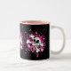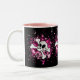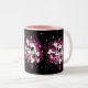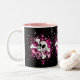 El cráneo de Girlie y los huesos cruzados con arco están rodeados por una explosión de rosa con corazones y estrellas.