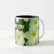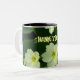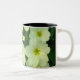 Una taza hermosa con la primavera agradable florece en un fondo verde oscuro.