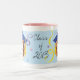 Taza de café personalizada de 444ml. ¡En cuanto a tamaño sólo puedo decir que enorme! pero es lo que esperaba así que estupendo. En el asa me entra la mano entera y no sólo tres dedos como me ocurría con las otras tazas. También comentar que es el tamaño que se ve en las series americanas, tanto para café como para infusión. En cuanto al acabado decir que es correcto, con poco tiempo de uso no puedo especificar mucho más. Pude escoger el nombre y el color pero no la tipografía, quizás esa elección pueda decidir a más gente. En términos generales y por el momento, buena opinión.