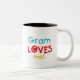 Gram Me Ama camisetas, tarjetas, pegatinas, bolsas de pantalones y mucho más con colorido rojo, amarillo y azul texto y diseño cardíaco. ¡Este Gram me ama ropa y artículos de regalo hará sonreír graso!
