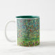 Una taza clásica hermosa que ofrece un manzano colorido, pintado por el pintor austríaco Gustavo Klimt del symbolist.