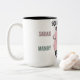 Taza de café personalizada de 444ml. ¡En cuanto a tamaño sólo puedo decir que enorme! pero es lo que esperaba así que estupendo. En el asa me entra la mano entera y no sólo tres dedos como me ocurría con las otras tazas. También comentar que es el tamaño que se ve en las series americanas, tanto para café como para infusión. En cuanto al acabado decir que es correcto, con poco tiempo de uso no puedo especificar mucho más. Pude escoger el nombre y el color pero no la tipografía, quizás esa elección pueda decidir a más gente. En términos generales y por el momento, buena opinión.
