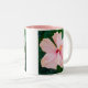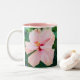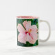 La taza de café ofrece la foto de un hibisco rosado delicado coloreado, floreciendo en hibisco de Hawaii.The es una flor tropical popular.