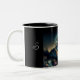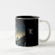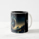 Hermoso y majestuoso lobo en un mar de montañas, estrellas y pinos. La taza de café perfecta para ti, el fanático del lobo. Personalice agregando sus iniciales.