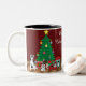 Esta adorable taza tiene una mami husky jugando con sus cachorros en los regalos junto al árbol de Navidad de un lado. Mientras se acerca dice Feliz Navidad y al otro lado tiene dos huskies más acurrucados al lado de un fuego cálido e invitante.
