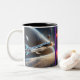A powerful space shuttle launches upward from a fiery red alien landscape, cutting through a glowing cosmic sky filled with distant planets and stars. This striking sci-fi artwork symbolizes ambition, courage, and limitless exploration. Printed on a premium mug, it’s perfect for dreamers, space lovers, engineers, gamers, and anyone who starts their day fueled by curiosity and cosmic ambition. Ideal for morning coffee, office desks, or inspirational gifting.