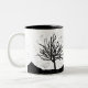 Huella de lino blanco y negro de la silueta de un árbol otoñal.