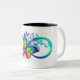 Taza Bicolor Infinito brillante con mariposa arco iris