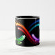 Symbol of infinity is artistically painted with fast moving, bright, luminous, rainbow colored comets with long flexible tails on black background. Rainbow infinity.