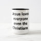 Jesus loves everyone, even the Christians. Comic Splash-Art coffee-mug print-design by Jeff Hankamer at Artjunkhaus