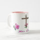 Taza de café personalizada de 444ml. ¡En cuanto a tamaño sólo puedo decir que enorme! pero es lo que esperaba así que estupendo. En el asa me entra la mano entera y no sólo tres dedos como me ocurría con las otras tazas. También comentar que es el tamaño que se ve en las series americanas, tanto para café como para infusión. En cuanto al acabado decir que es correcto, con poco tiempo de uso no puedo especificar mucho más. Pude escoger el nombre y el color pero no la tipografía, quizás esa elección pueda decidir a más gente. En términos generales y por el momento, buena opinión.
