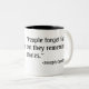 Taza de café personalizada de 444ml. ¡En cuanto a tamaño sólo puedo decir que enorme! pero es lo que esperaba así que estupendo. En el asa me entra la mano entera y no sólo tres dedos como me ocurría con las otras tazas. También comentar que es el tamaño que se ve en las series americanas, tanto para café como para infusión. En cuanto al acabado decir que es correcto, con poco tiempo de uso no puedo especificar mucho más. Pude escoger el nombre y el color pero no la tipografía, quizás esa elección pueda decidir a más gente. En términos generales y por el momento, buena opinión.