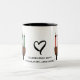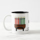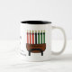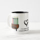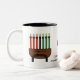 Personalice esta taza de vacaciones de Kwanzaa con su propio texto. Diseño de imágenes de siete velas en rojo, verde y negro tradicional sobre un fondo blanco. Acentuado en el centro con un doodle cardíaco florecido.Parte de una colección de elementos de coordinación en este mismo diseño en Monogramas y Monikers en Zazzle.