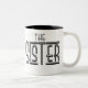 Mug presenta un sencillo diseño tipográfico que hace la declaración "LA" hermana en blanco y negro.