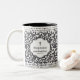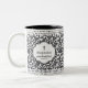 Empieza tu día con café y Jesús. Este moderno tazón de patrón negro abstracto presenta el inspirador verso de la escritura, "la oración cambia las cosas. James 5:16" y es personalizado con tu nombre.