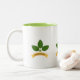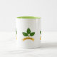 Modernas y hermosas hojas de laurel verde y cinta dorada sobre el Mug blanco. El texto se puede personalizar.