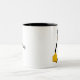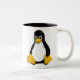 Frente de la taza como imagen de Tux, la mascota Linux y la parte posterior tiene " /dev/mug "