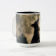 En alguna parte en el desierto de Norteamérica, un lobo gris grita delante de una Luna Llena.