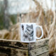 Taza Bicolor Lobo gris artístico en acuarela