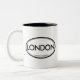¡Recepción a Londres! ¿Es usted de Londres, Reino Unido? ¿Usted tiene un amigo o un miembro de la familia que amen Londres, Reino Unido? ¡Si es así esta "taza de la ubicación de la ubicación" es lo que usted está buscando! Las características del diseño "Londres" en letras negras y "Reino Unido grandes" en las letras negras minúsculas rodeadas por dos óvalos, uno fino y uno grueso.