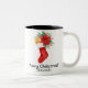 A los navidades les encanta la taza de café con dos tonos . Estacionando con flores y hojas.