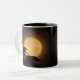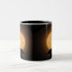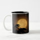 Es otoño, y una luminosa luna llena amarilla dorada se ha levantado detrás de las siluetas negras de hojas soplando en la brisa en este espectacular tazón fotográfico de arte fino. El fondo está iluminado en tonos naranja, dorado y marrón para crear un patrón abstracto con un motivo asiático. El diseño se repite en los lados derecho e izquierdo.