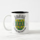 Trama de café Funchal de dos tonos con el escudo de armas de Funchal. Funchal es la capital de la Región Autónoma de Madeira. Es una hermosa ciudad que abraza las montañas que domina el Atlántico azul. Un lugar encantador. Para obtener más información, visite:www.zazzle.com/azorean*. Luego navegue por la categoría Azores. #madeira #madeiramug