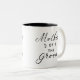 Madre del novio en un estilo de tiza escrita a mano, con un corazón en lugar de la "o"; personalice el estilo de la taza y el color interior