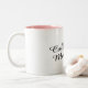 Taza de café personalizada de 444ml. ¡En cuanto a tamaño sólo puedo decir que enorme! pero es lo que esperaba así que estupendo. En el asa me entra la mano entera y no sólo tres dedos como me ocurría con las otras tazas. También comentar que es el tamaño que se ve en las series americanas, tanto para café como para infusión. En cuanto al acabado decir que es correcto, con poco tiempo de uso no puedo especificar mucho más. Pude escoger el nombre y el color pero no la tipografía, quizás esa elección pueda decidir a más gente. En términos generales y por el momento, buena opinión.