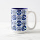 Comience la mañana con un toque italiano. Esta taza de café con cítricos de limón presenta un patrón de azulejos azul marino mediterráneo, acentos botánicos florales y vibraciones de verano.