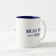 Esta taza se muestra con la mejor huella del hombre; el color del texto es azul marino. Caja fuerte con microondas y lavavajillas. Personalizar este artículo o compre como está diseñado. Imagen con licencia