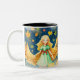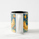 Milly el café Ángel Mug Milly el ángel te cantará en caída. Los colores de la taza son azul, amarillo dorado y verde claro.