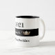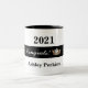 Felicitaciones Mug mostrado en blanco y negro con una brillante corona de concurso en tono dorado. Personalice este elemento con el nombre y la fecha.
