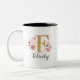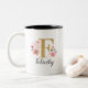 Letra bonito F personalizado floral mug. Personalice esta hermosa taza de monograma floral rosa para usted o para un amigo. Hace un gran regalo para cumpleaños, Navidades o simplemente porque. Diseñado para ti por Blackberry Boulevard.