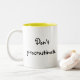 Taza de café personalizada de 444ml. ¡En cuanto a tamaño sólo puedo decir que enorme! pero es lo que esperaba así que estupendo. En el asa me entra la mano entera y no sólo tres dedos como me ocurría con las otras tazas. También comentar que es el tamaño que se ve en las series americanas, tanto para café como para infusión. En cuanto al acabado decir que es correcto, con poco tiempo de uso no puedo especificar mucho más. Pude escoger el nombre y el color pero no la tipografía, quizás esa elección pueda decidir a más gente. En términos generales y por el momento, buena opinión.
