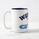 Mug, blanco con interiores azules y el logo de The Website Guy en el exterior