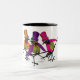 Tres pájaros fiestas salvajes, locos y divertidos, que se frotan las plumas usando chaquetas de esmoquín de colores desenfrenados, sombreros, chalecos y corbatas de arco en naranja ardiente, púrpura gótica y rosa caliente. Vestidos a boogie, estos no son los pájaros cantores de la variedad de jardín que pecan en el patio. Gráfica poster divertida. Artista, Margaret Loftin Whiting.