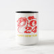 2024 Feliz Año Nuevo. Imagen de una cabeza de dragón asociada a los números; texto amarillo dice Feliz Año Nuevo. Signo zodiaco chino de un dragón para el año 2024. Este diseño es un gran regalo para todos.